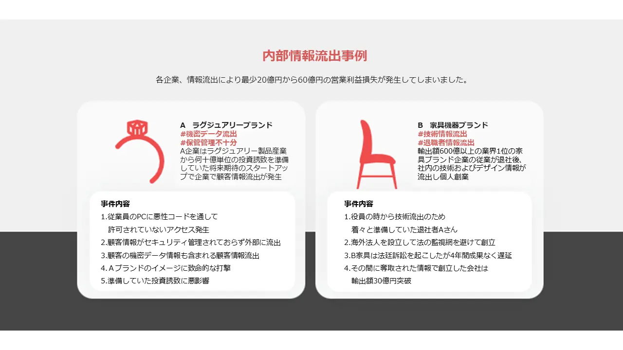 さらには契約書などの対外秘の機密データを含めると、事実上情報流出に備える必要がない企業はありません。