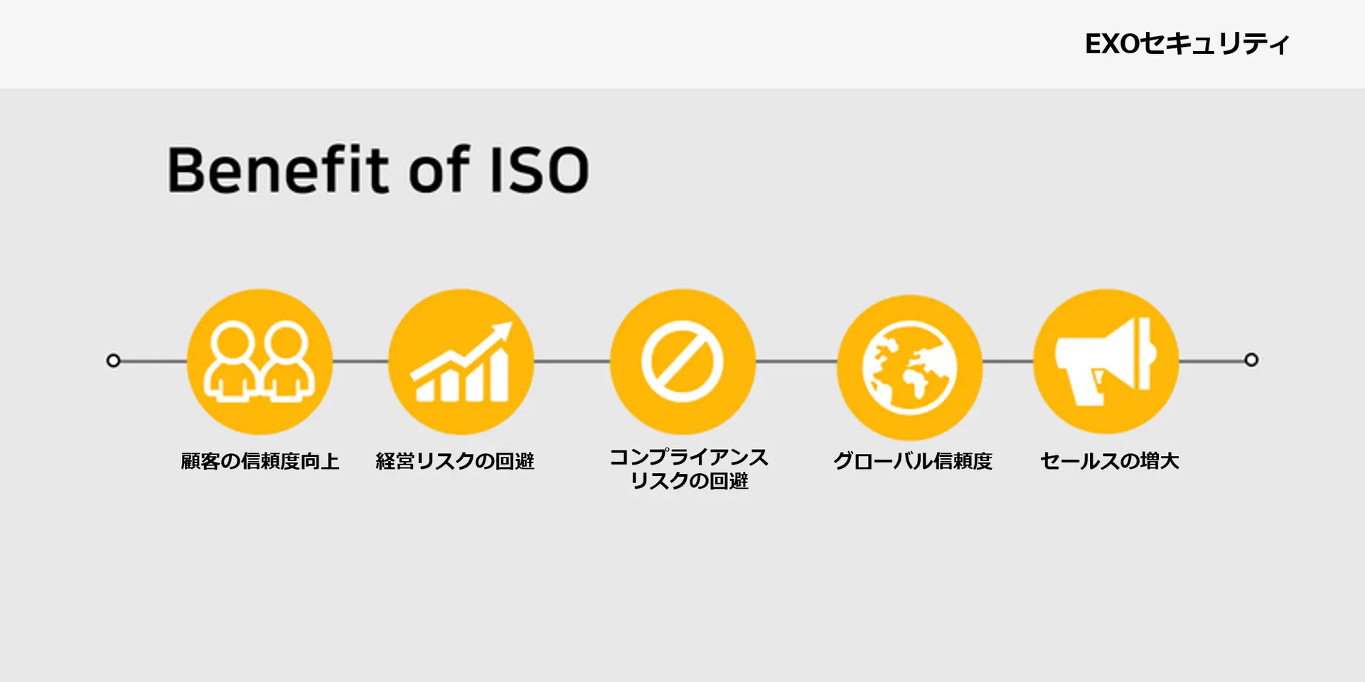 認証一つで自社のセキュリティレベルを全世界に認められる水準を得られる長所があります。