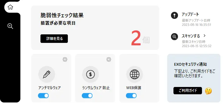 EXOセキュリティで安全なPCセキュリティを実現してみてはいかがでしょうか。
