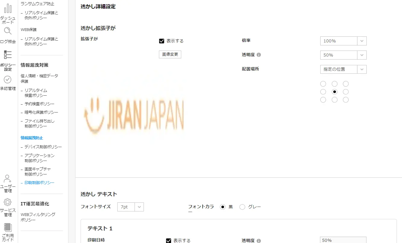 ・印刷時保護措置 :個人情報印刷時、印刷記録及びウォーターマーク挿入等の保護措置