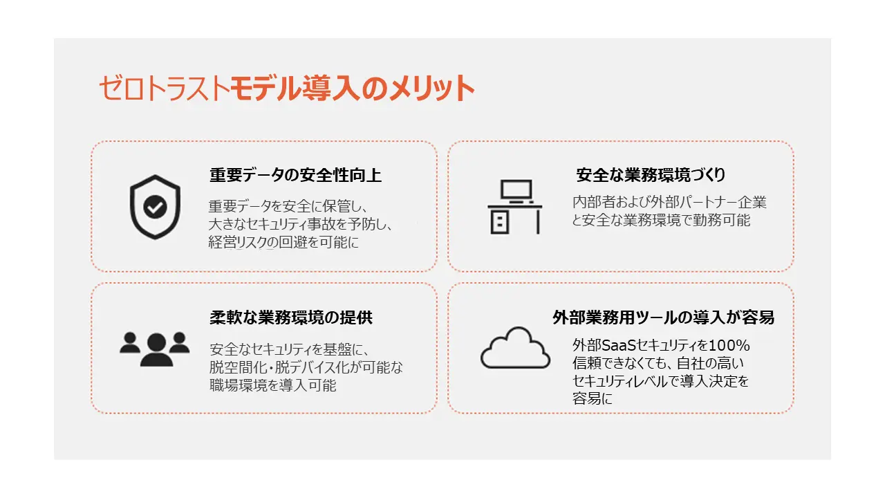 ゼロトラストが導入されると、逆に仕事を進めるのが面倒になると思っていませんか。実際には、そんなことはなくむしろ、業務の生産性改善に役立つ部分が多いです。